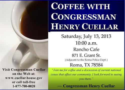 Join Congressman Henry Cuellar for Coffee on Saturday, July 13