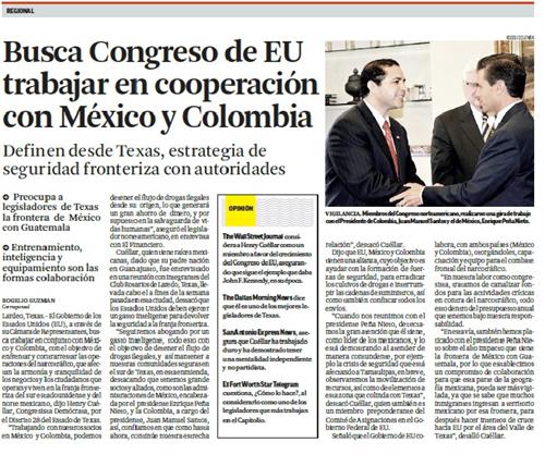 Edición Monterrey: Busca Congreso de EU trabajar en cooperación con México y Colombia
