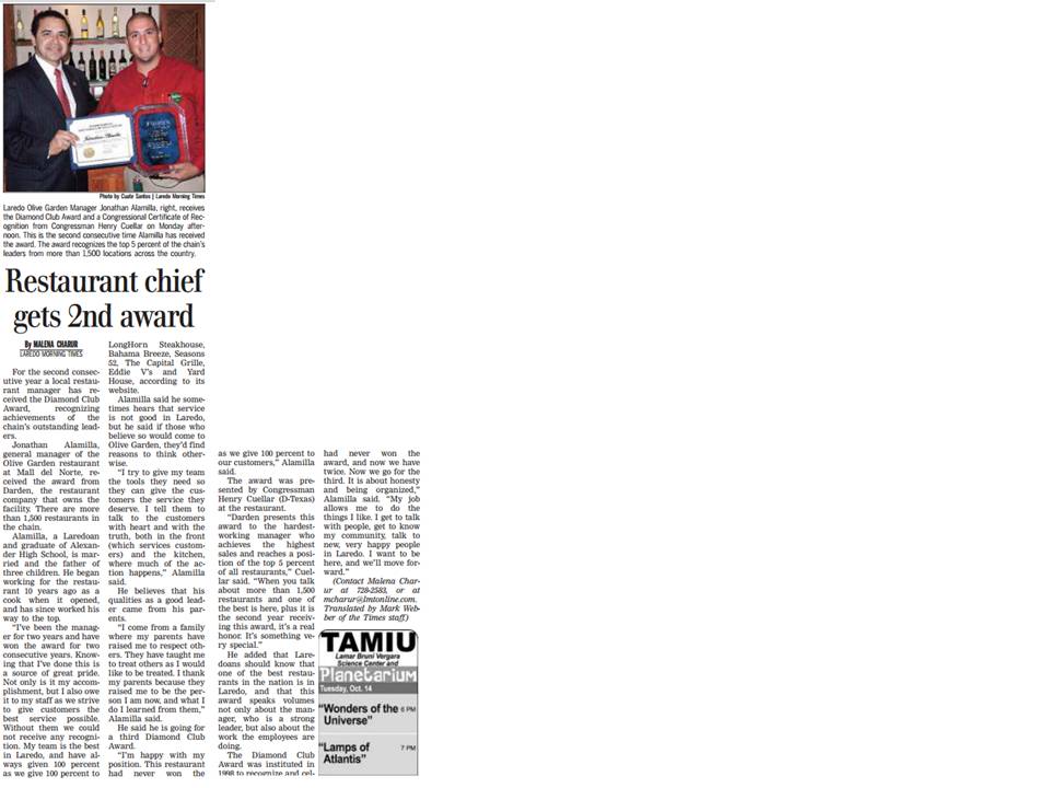 Laredo Morning Times: Restaurant chief gets 2nd award
